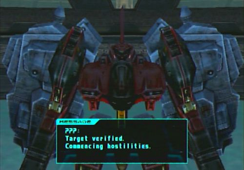 But the transition from PSOne to PS2 apparently wasn’t enough to end Nine-Ball’s crimson legacy. He has made a couple of guests appearances in the later AC games, first by making his PlayStation 2 debut as a secret boss in AC2: Another Age, as part of a mission, and later on in the Lost Field secret area where the player fights both his normal and Seraph form once again. Nine-Ball, with the aforementioned redesign, also served as the player’s final examiner in Armored Core: Ninebreaker.